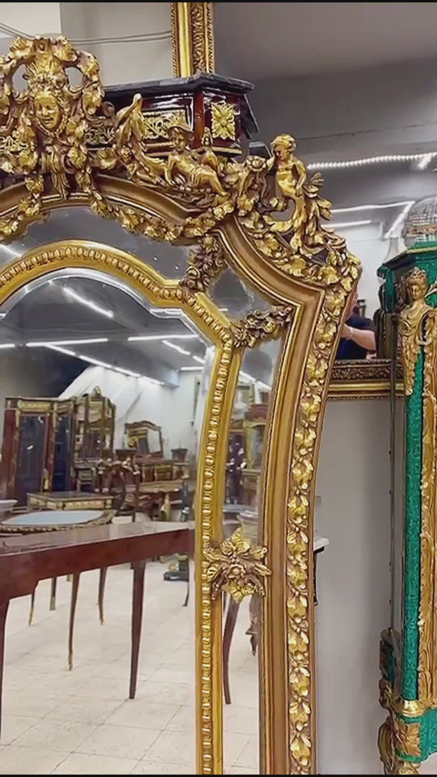 Curved Shape Gold Antique Mirror French Baroque Style Floor Mirror Gold Leaf