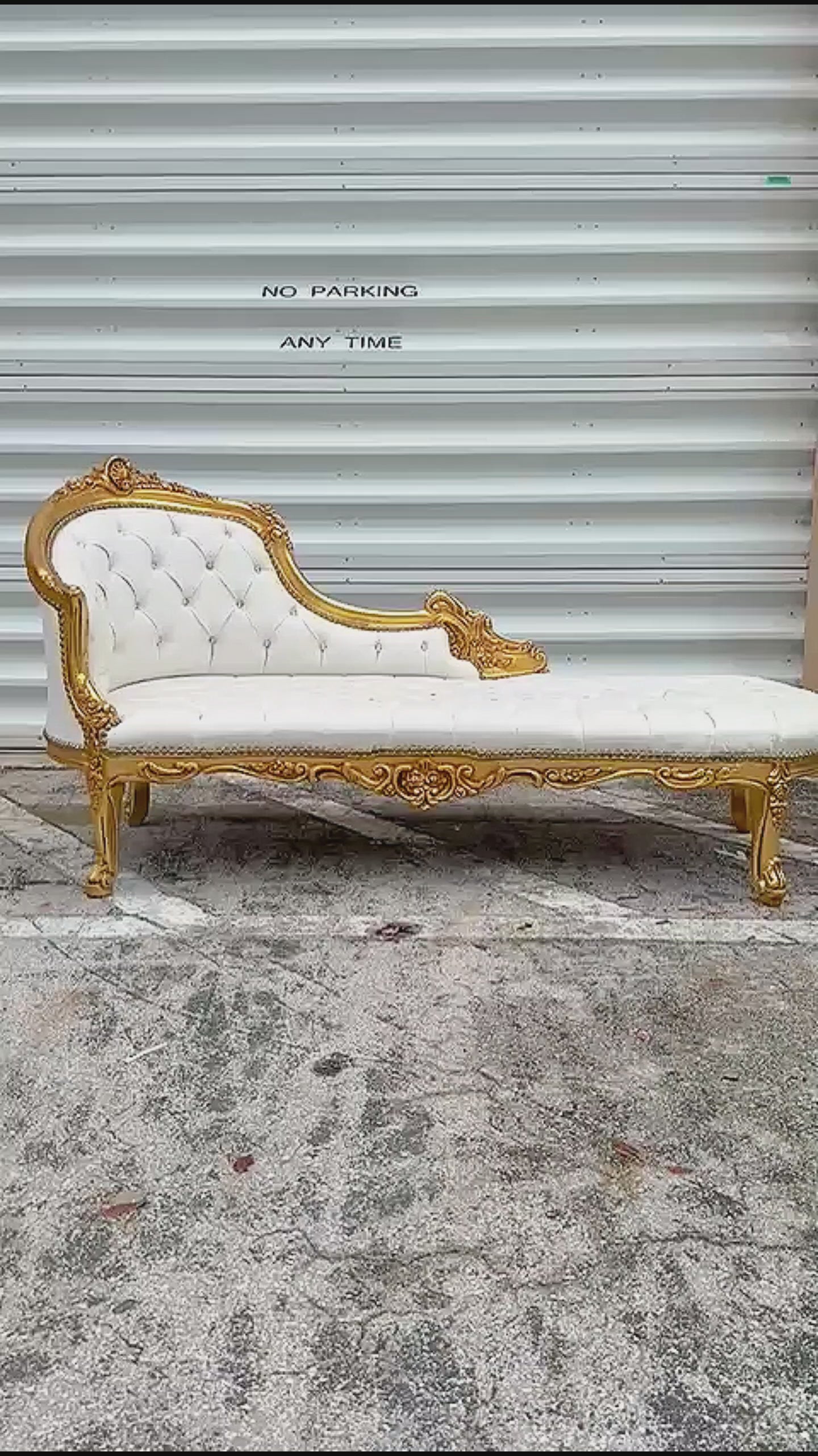 Gold Leather Chaise Lounge Furniture Rococo Style with Gold Leaf Details