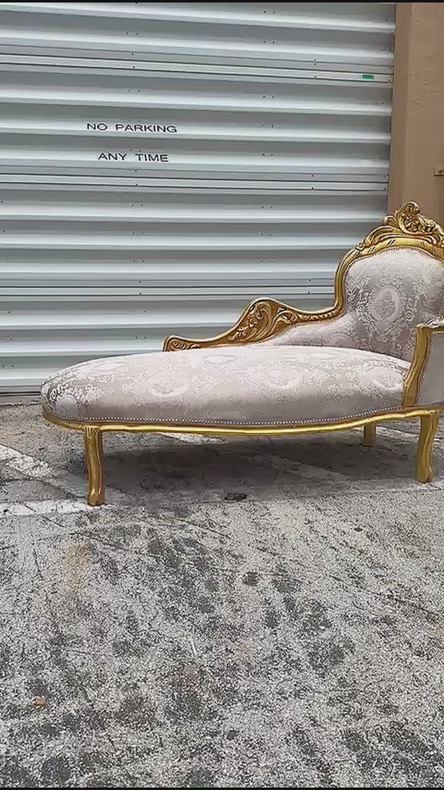 Chaise Lounge Furniture Rococo Style Beige Color with Gold Leaf Details