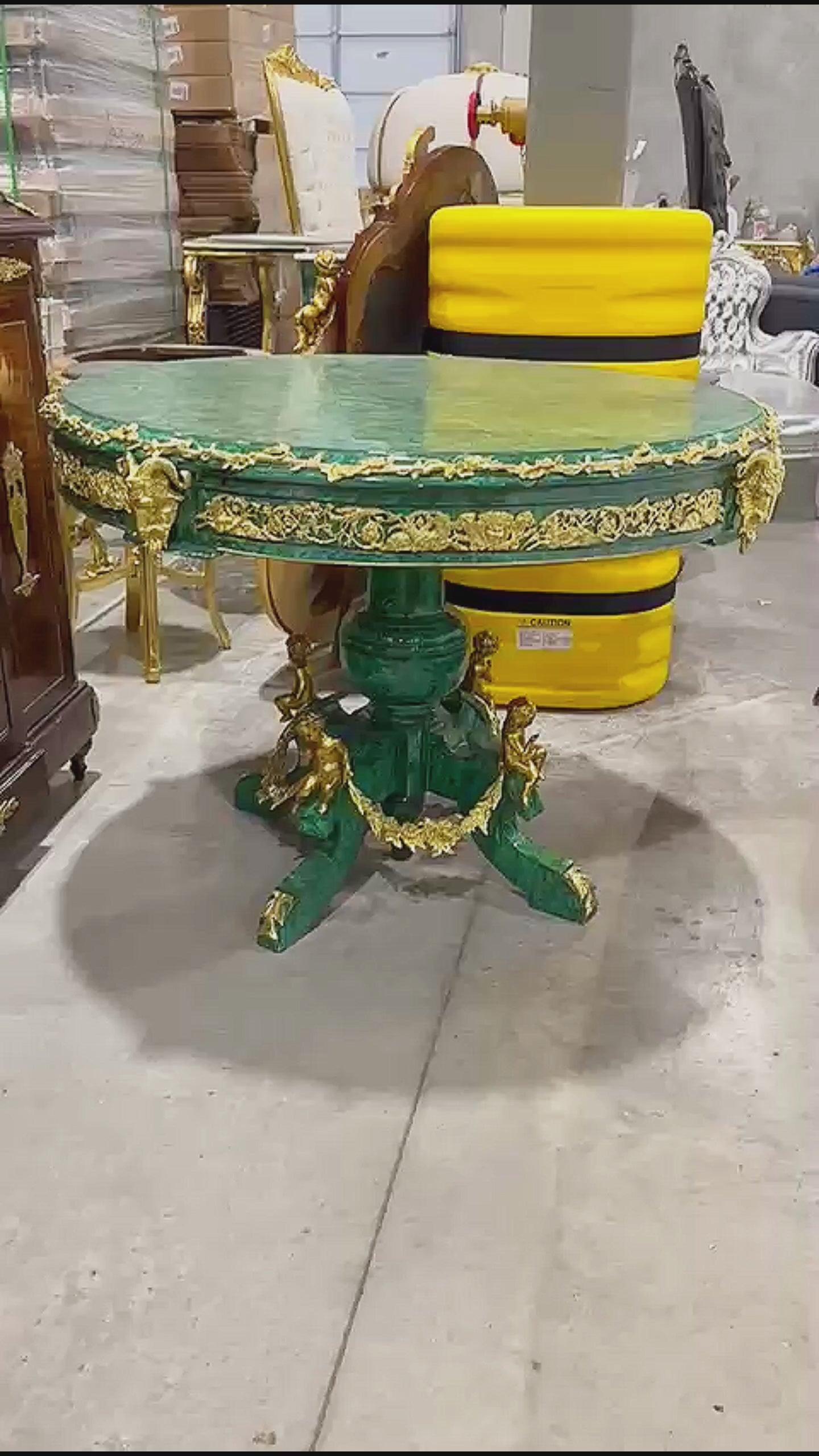 French Rococo Style Green Dining Table Round Pedestal Refinished with Bronze
