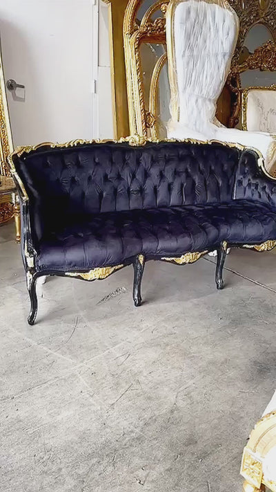 Gothic Style Black Velvet Sofa Interior Design Gold Leaf Details French