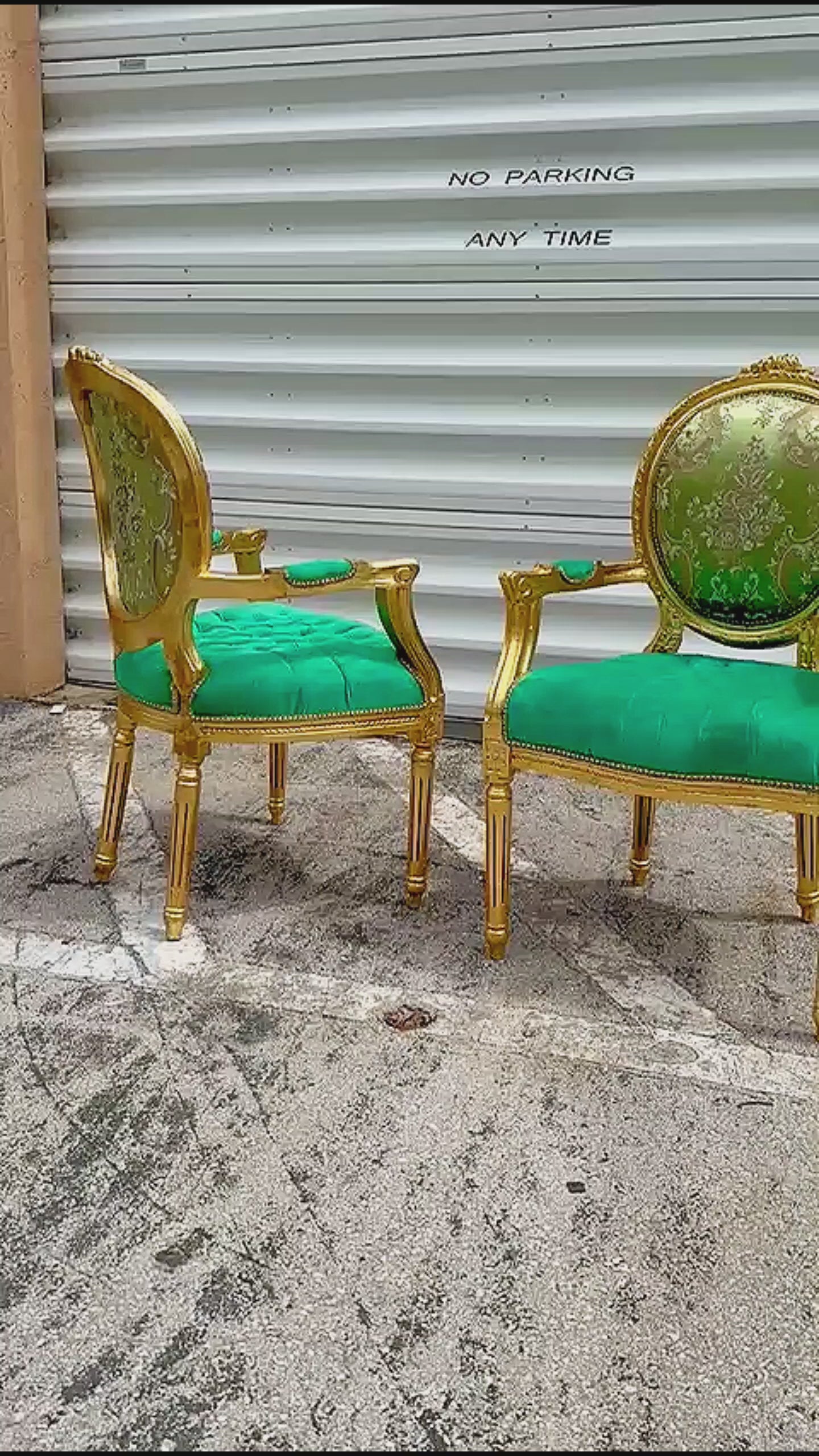 French Style Green Velvet Chair with Gold Details Rococo Baroque