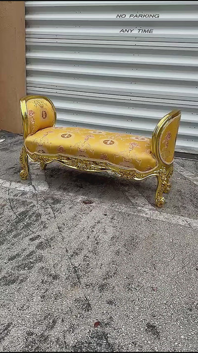 Marquis Bench French Style Yellow Damask Gold Details Interior Design Furniture