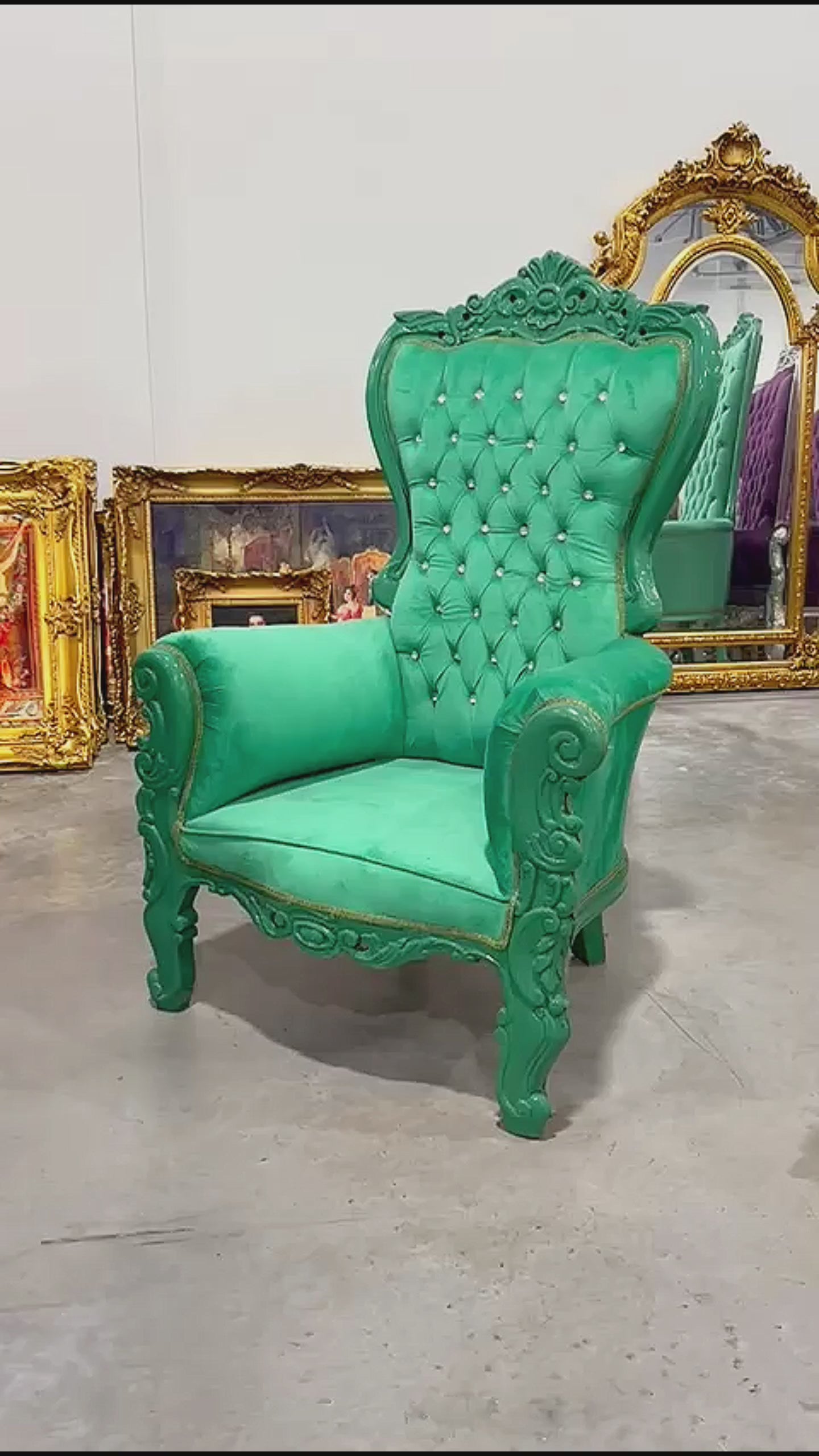 French Style Green Velvet Throne Chair Midsize Tufted Chair