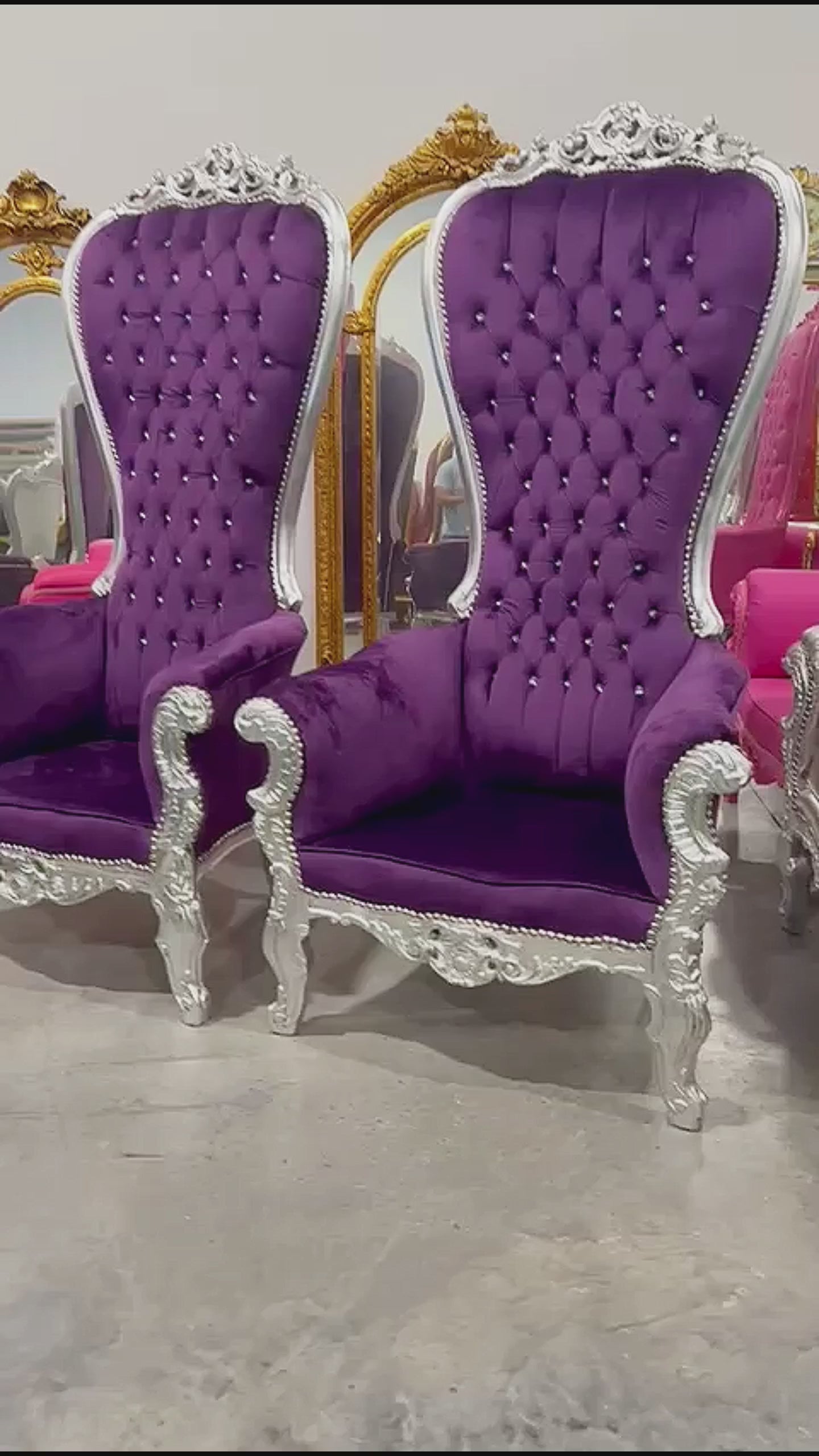Throne Chair French Style Purple Velvet High-Back Tufted Silver Throne
