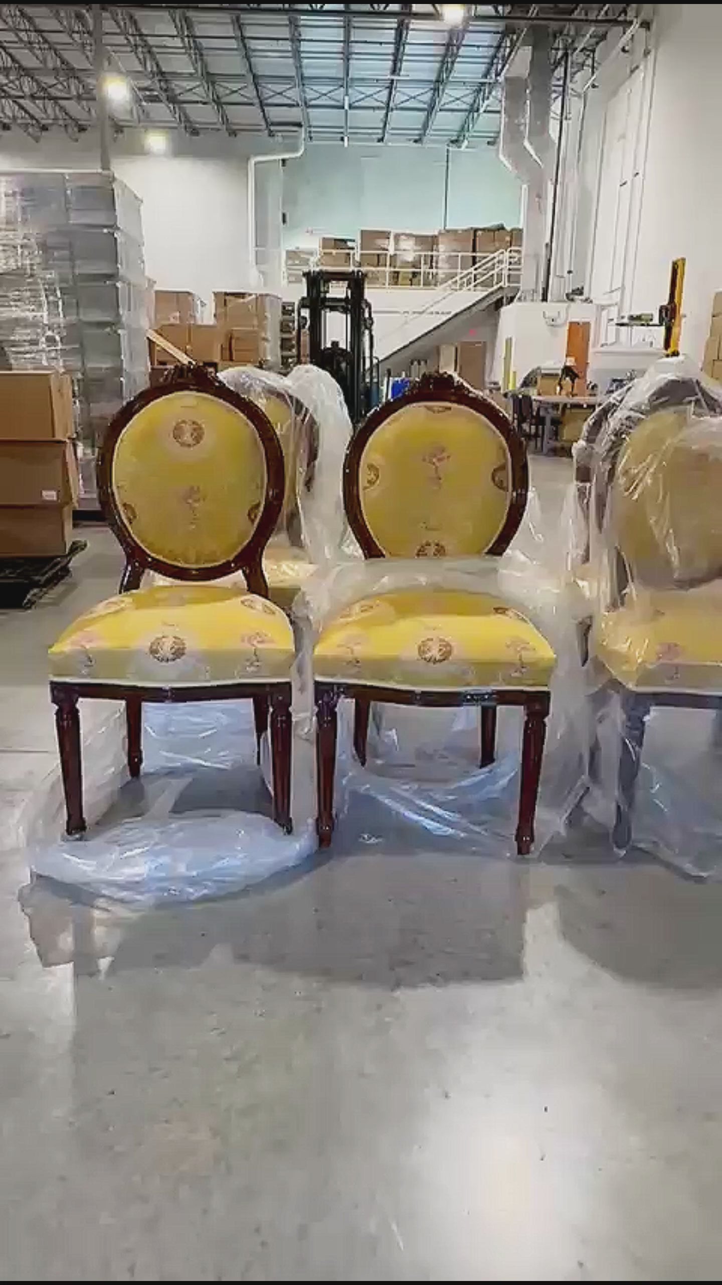 This elegant French-style chair is the perfect addition to any home. Versatile and sophisticated, it can be used as a dining chair or an accent chair to suit a variety of styles and spaces. Its detailed gold frame emphasises its distinction, while the new yellow damask fabric adds a touch of freshness and luxury. Ideal for those seeking a balance between comfort and classic design, own it and transform your environment with this unique piece!