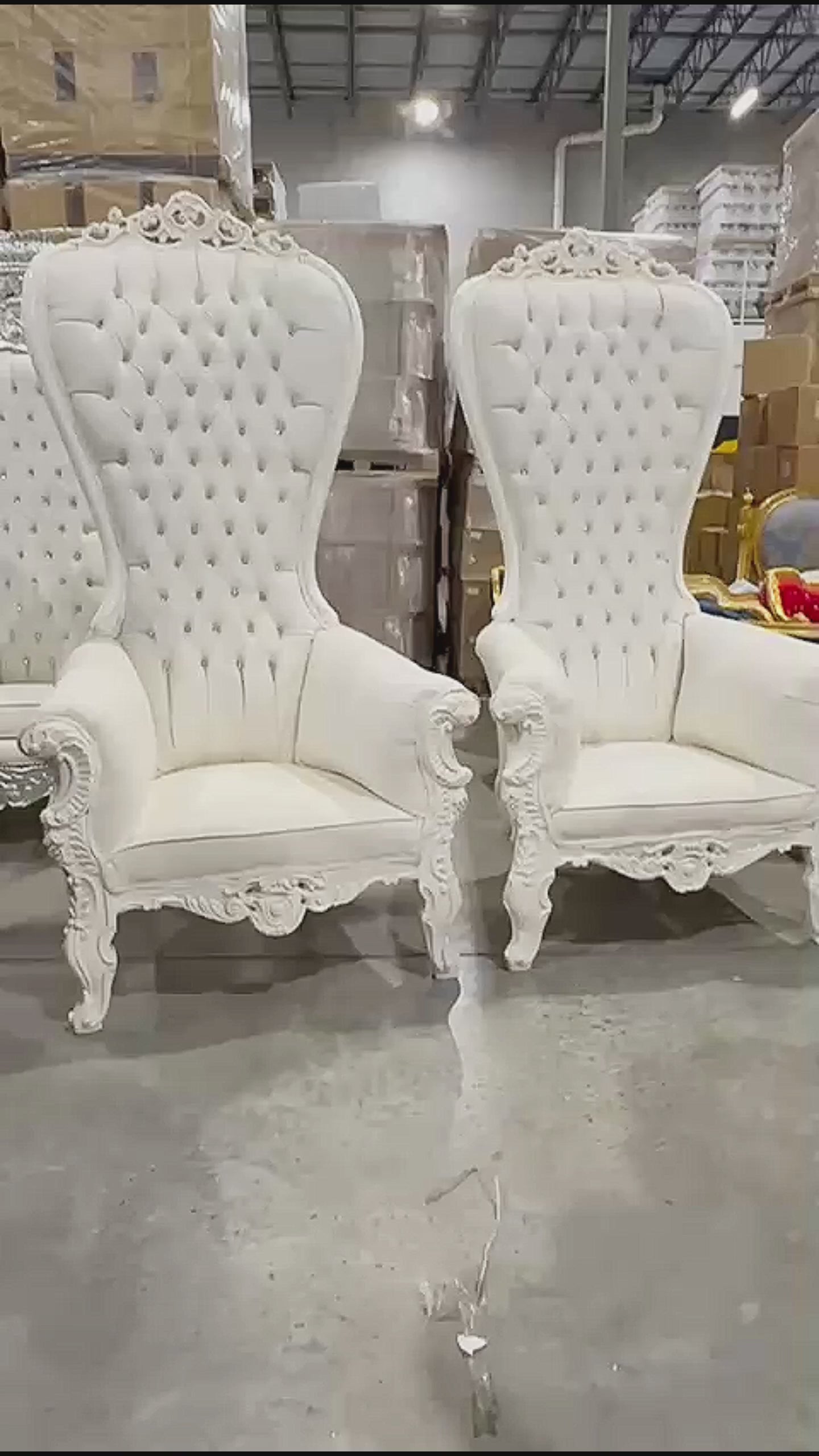 Great deal on a set of white throne chairs! *The set has 2 throne chairs*