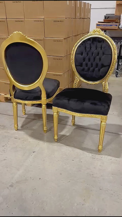 French Style Tufted Black Velvet Chair with Gold Details Rococo Baroque