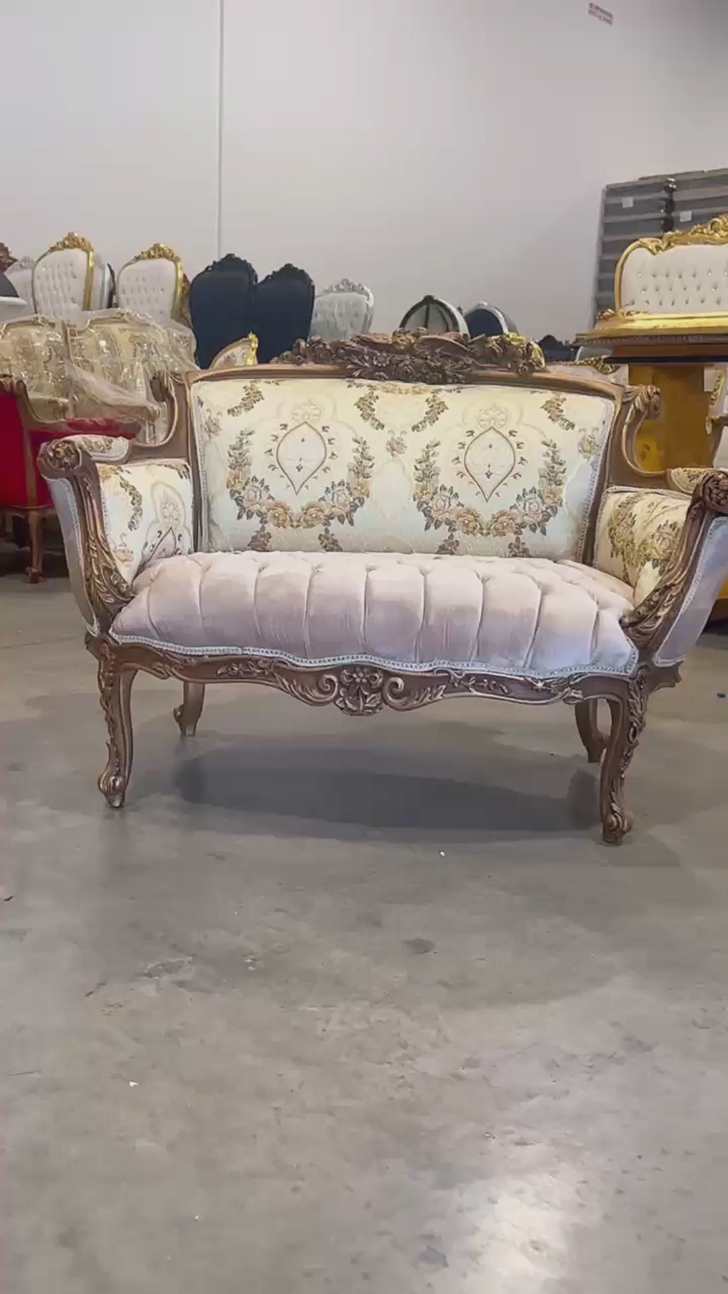 A beautifully carved birds at the centre adds a romantic and graceful touch, making this sofa a true statement of refinement. Updated padding provides modern comfort, while the craftsmanship speaks to a bygone era. This piece invites you to relax like royalty.