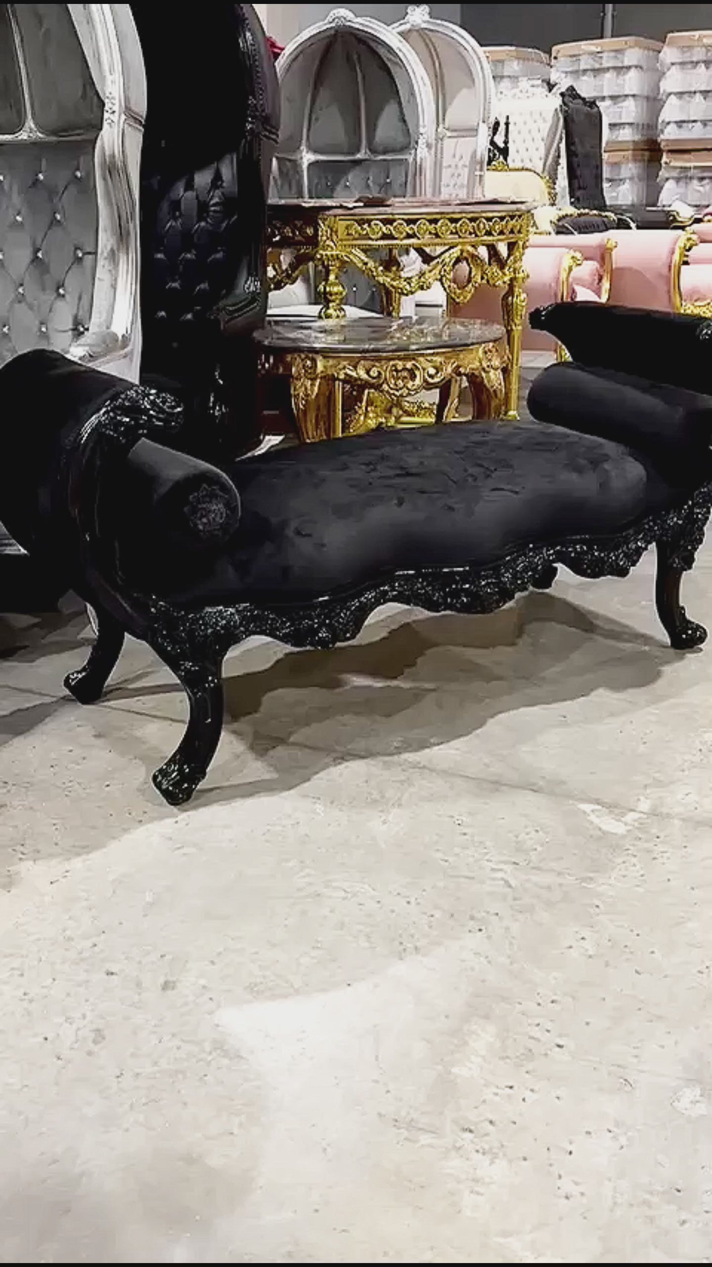 Baroque Style Black Velvet Bench Interior Deisgn Furniture