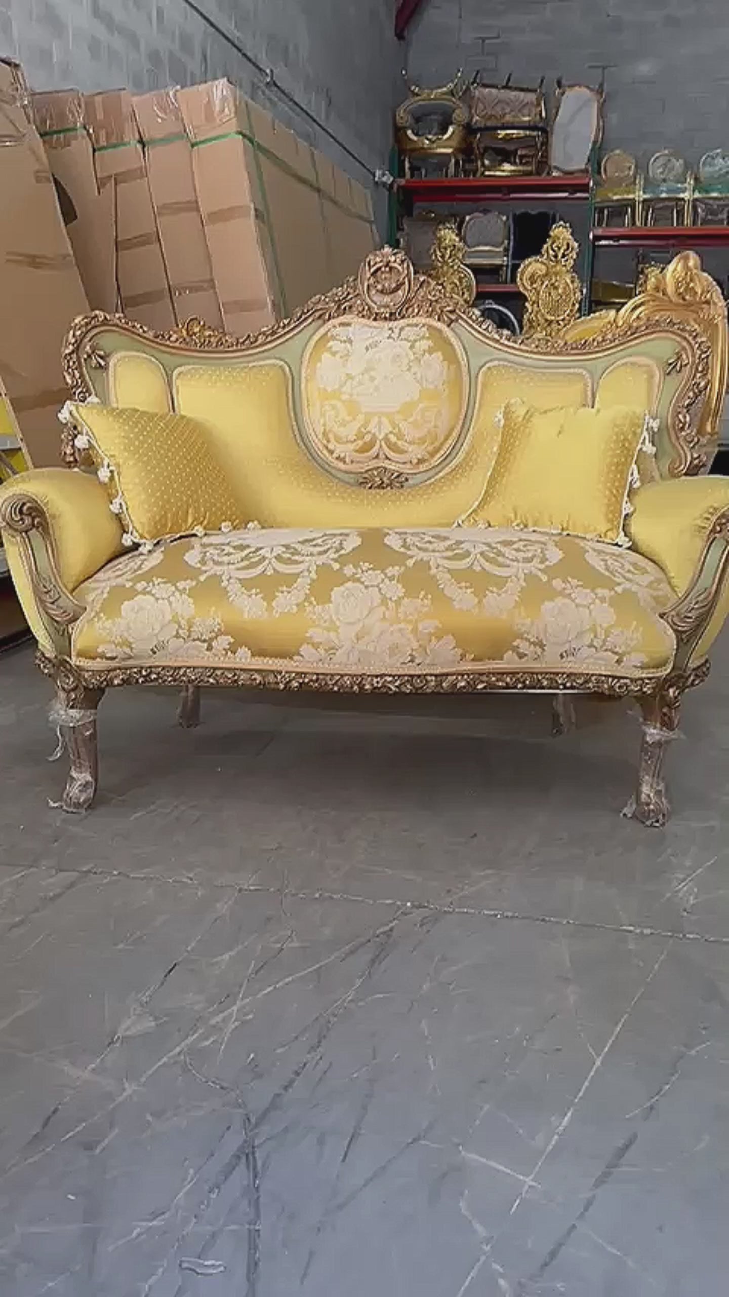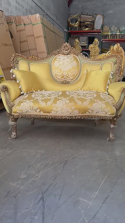 French Rococo Style Sofa Gold Color and Gold Leaf Details Big Sofa Furniture