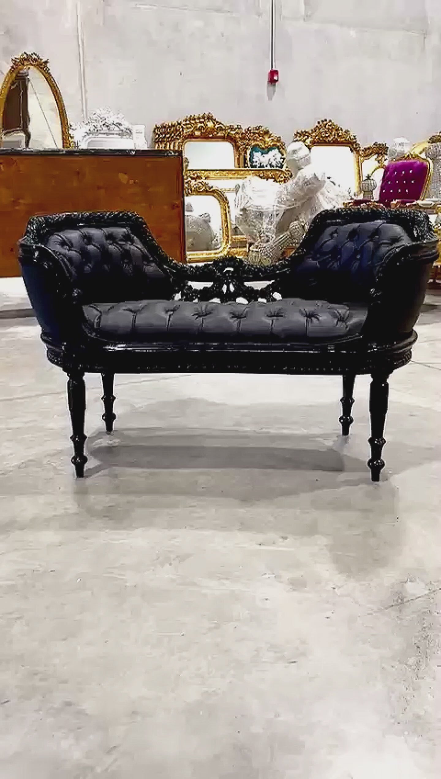 Tufted Bench Black Leather French Style Black Details Rococo Baroque Furniture