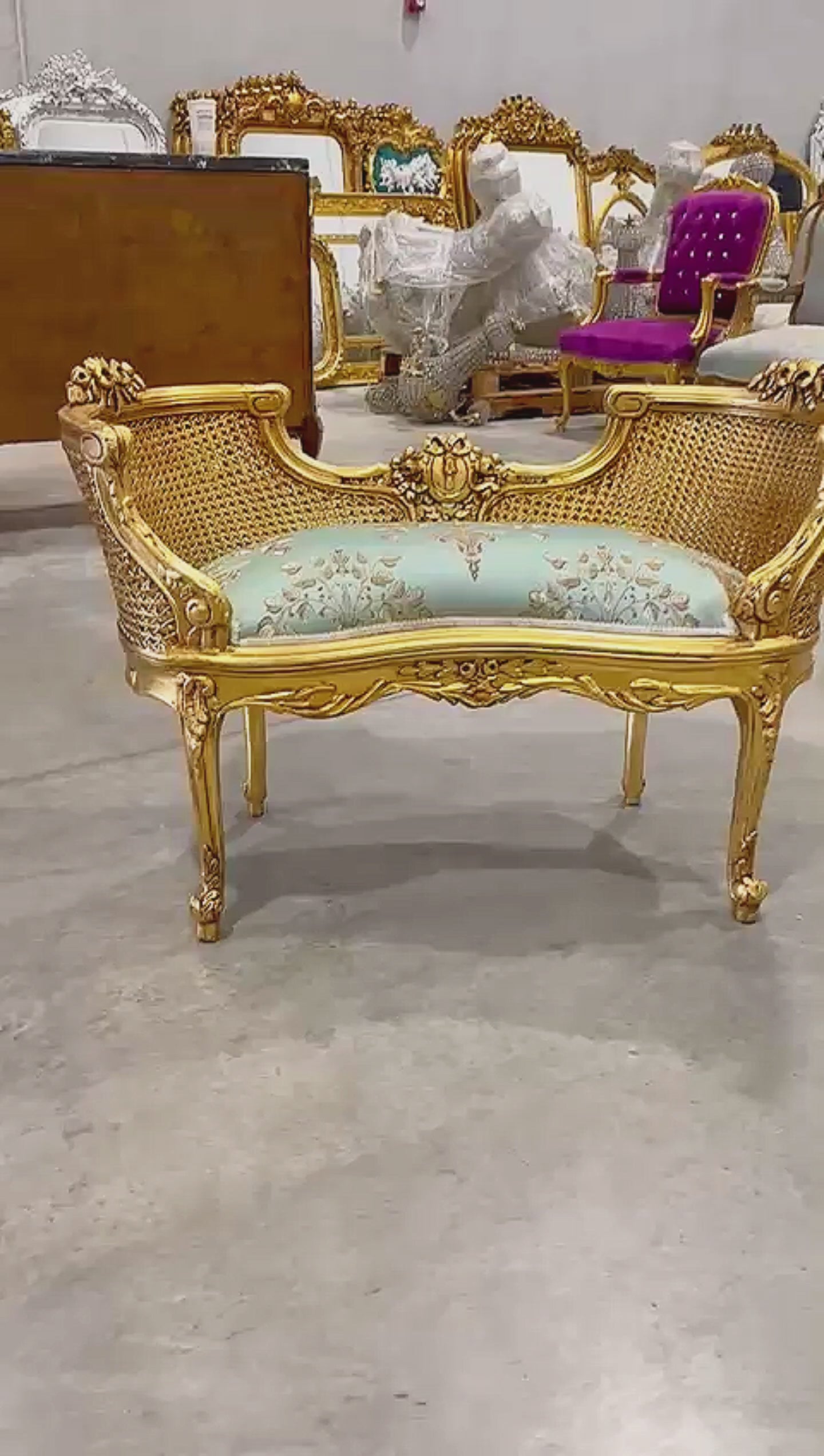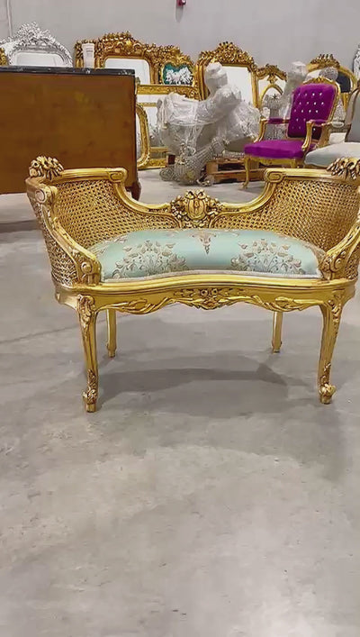 Bench Damask French Style Gold Leaf Details Rococo Baroque Furniture
