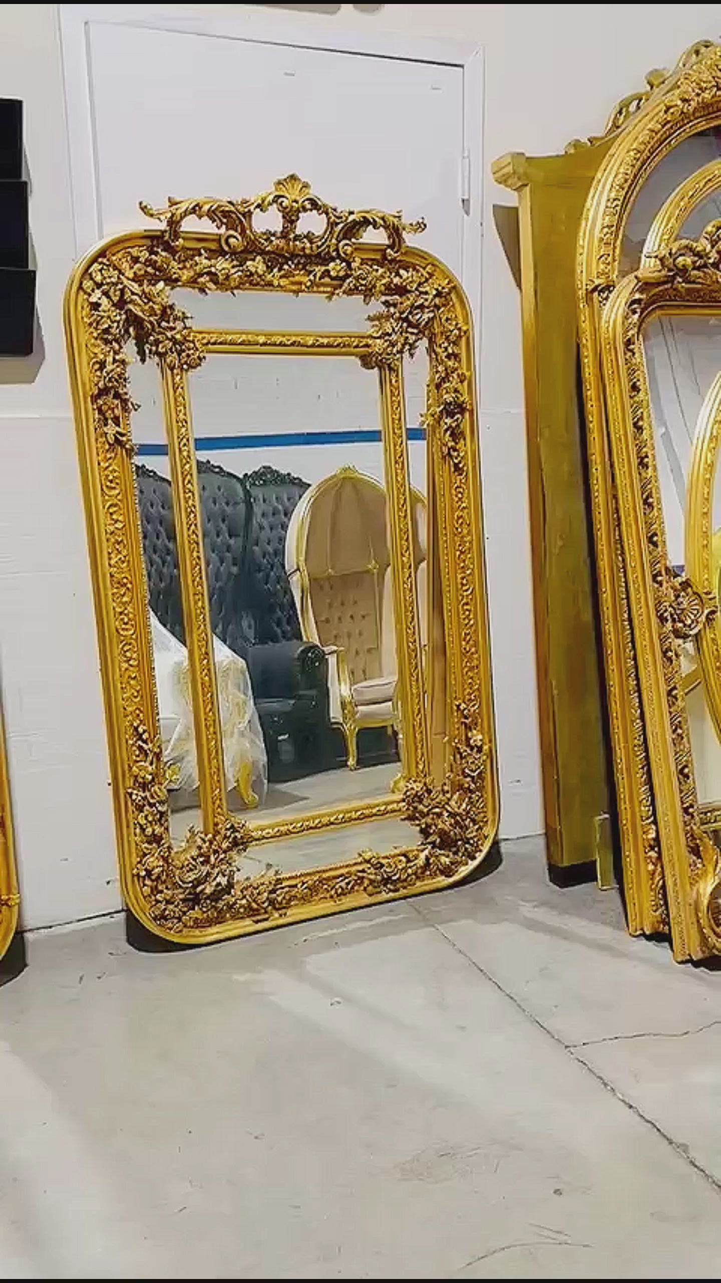 Ornate French Gold Leaf Mirror – Baroque Style Full-Length Floor Mirror