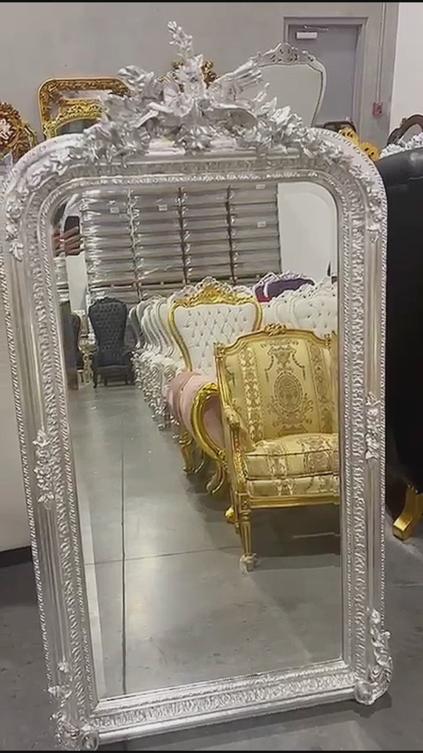 In love with the design of this piece. You can see details of birds at the top covered with silver leaf. This stunning mirror definitely shows beautiful craftsmanship. This can be used in many different areas of your home. Perfect for selfies.