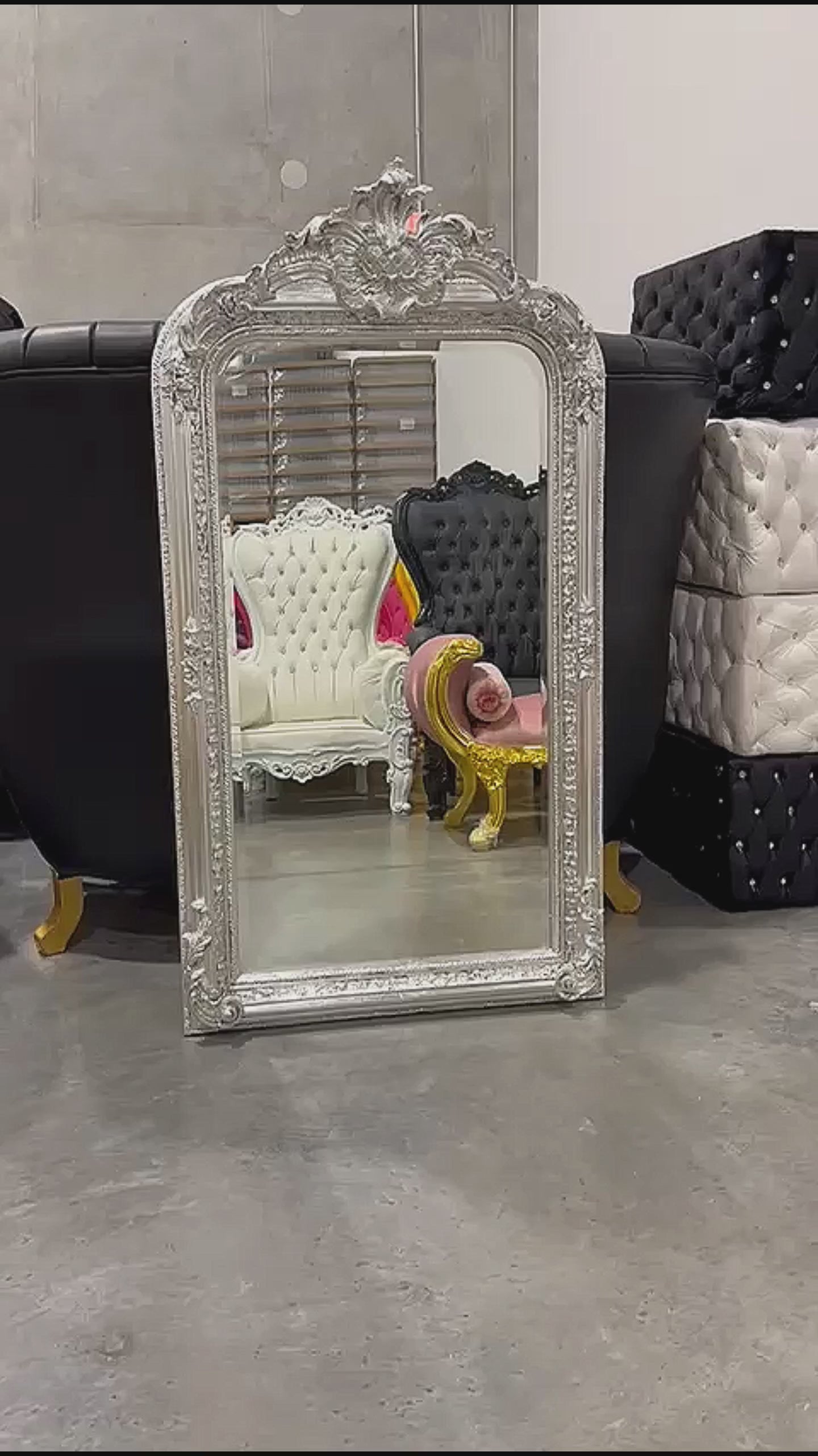 French Style Silver Floor Mirror 5 Feet Tall Silver Leaf Details