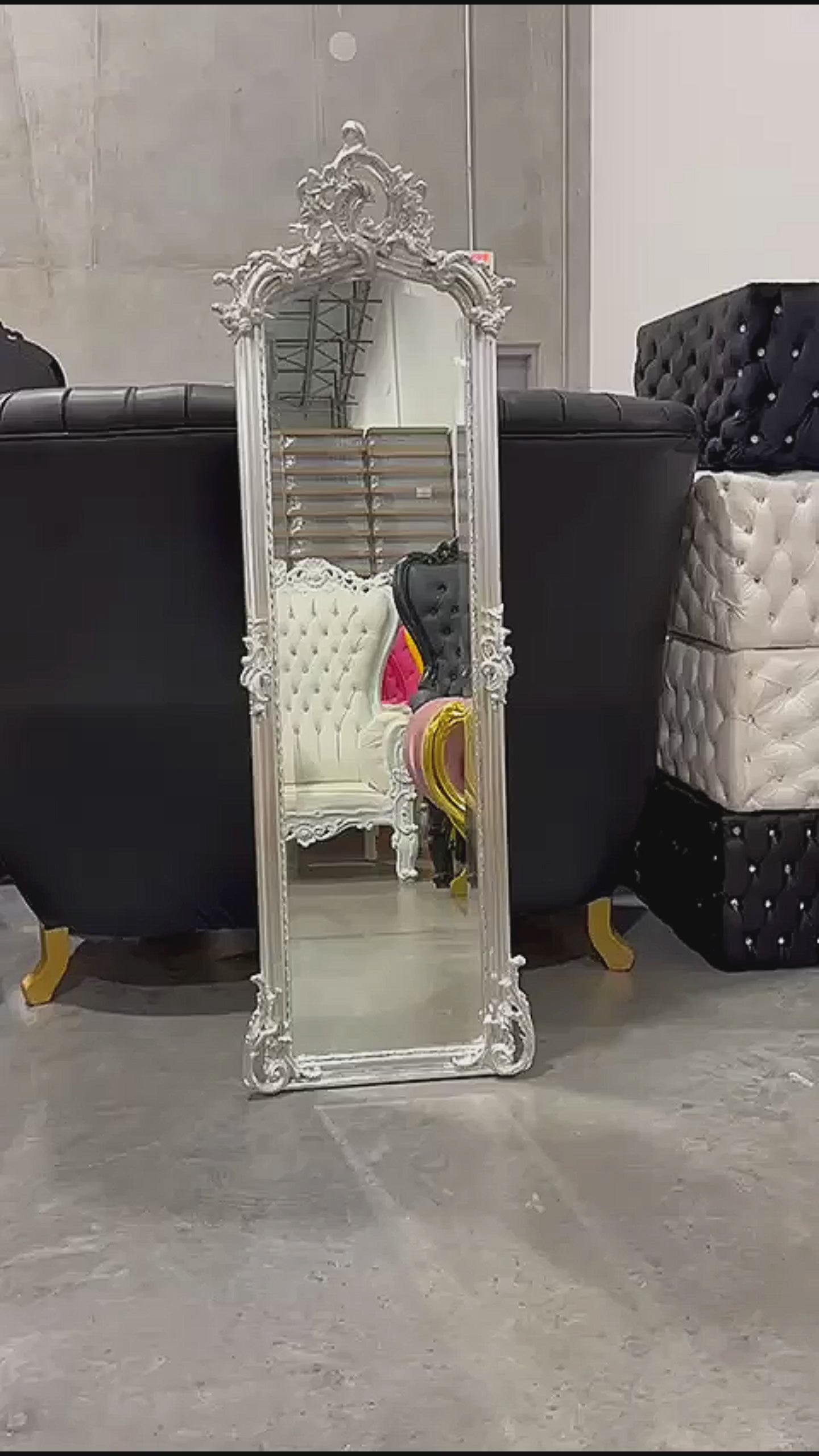 French Style Silver Floor Mirror Refinished in Silver Leaf