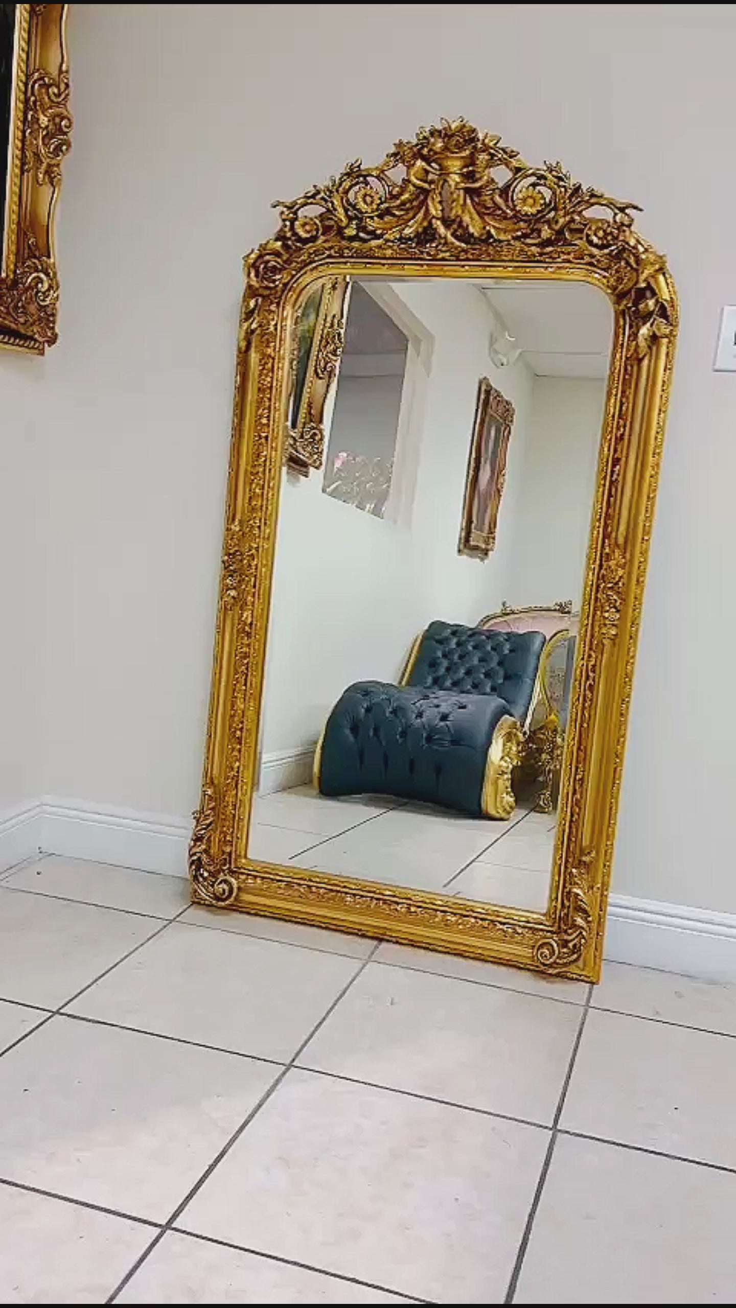 French Style Gold Floral Floor Mirror 5 Feet Tall Gold Leaf