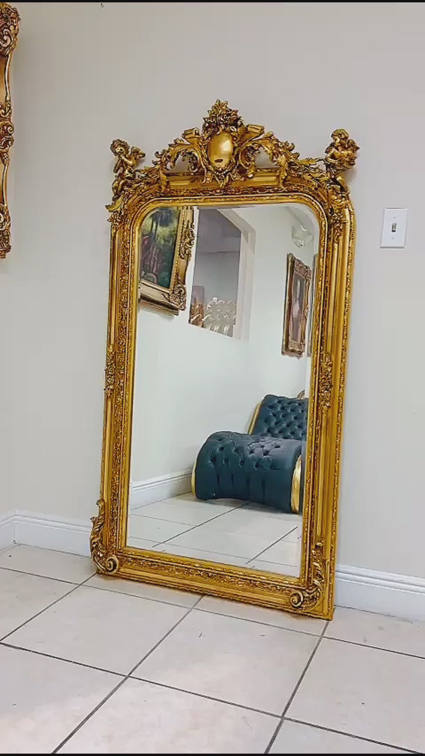 5ft French Style Gold Floor Mirror – Ornate Gold Leaf Frame, Elegant Design
