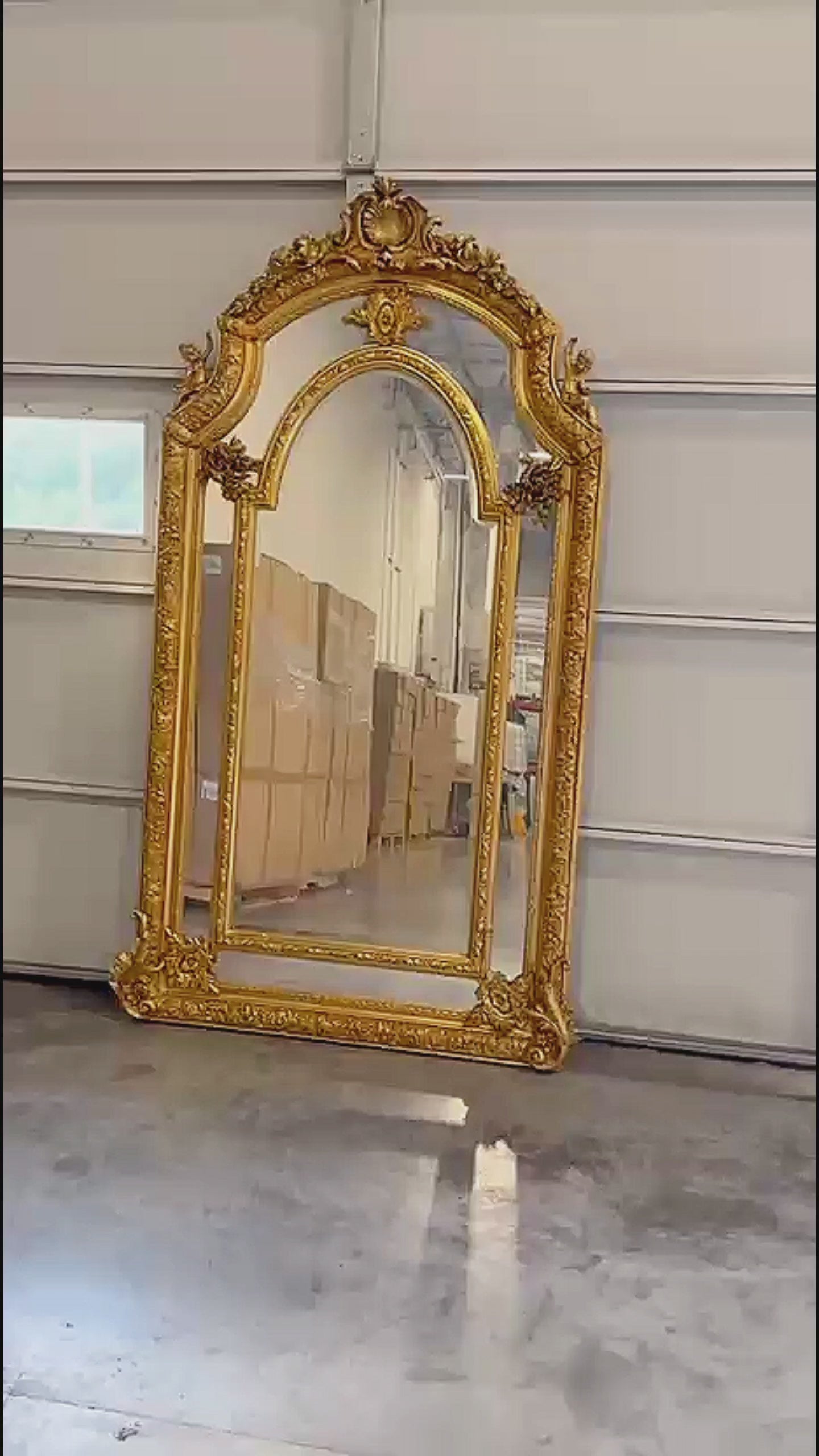 Baroque Rococo Floor Mirror – Gold Leaf Finish, Angels Carved on Both Sides