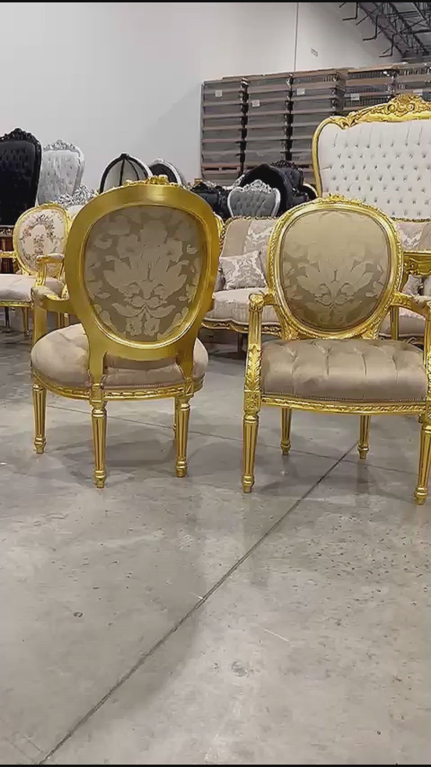 French Style Light Borwn Velvet Chair with Gold Details Rococo Baroque