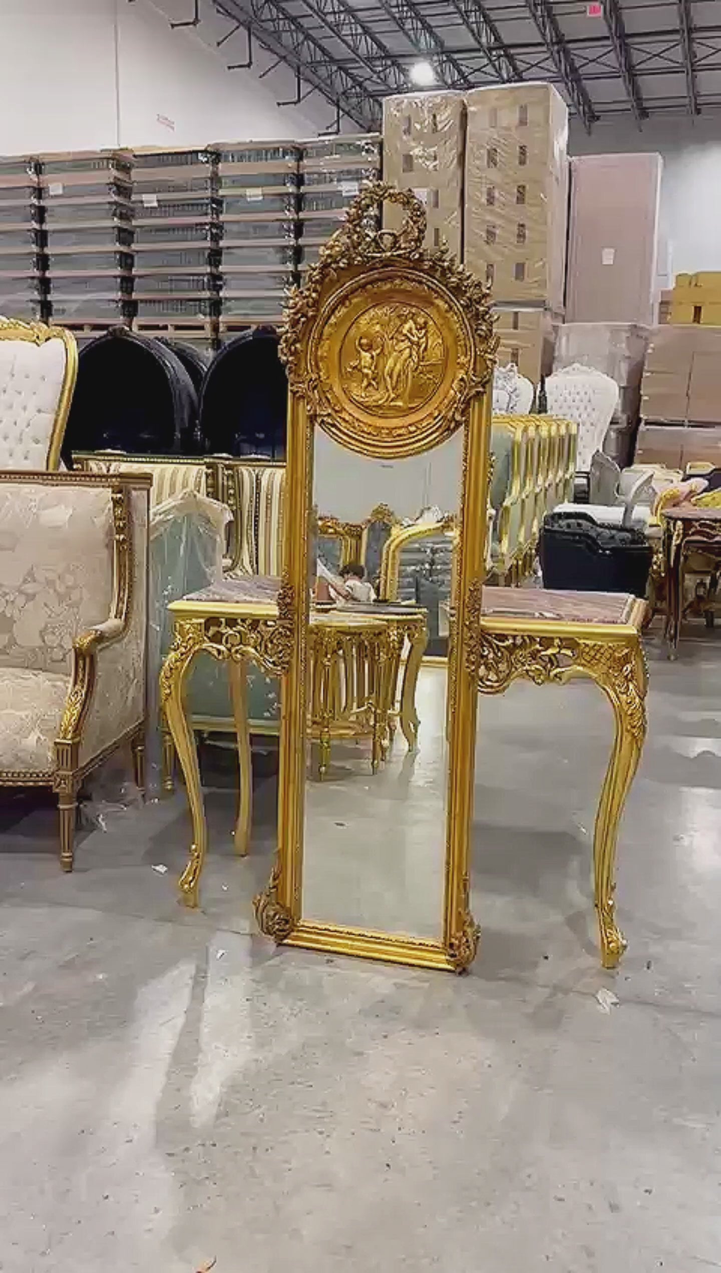 French Baroque Style 6 Feet Tall Dark Gold Floor Carved Mirror