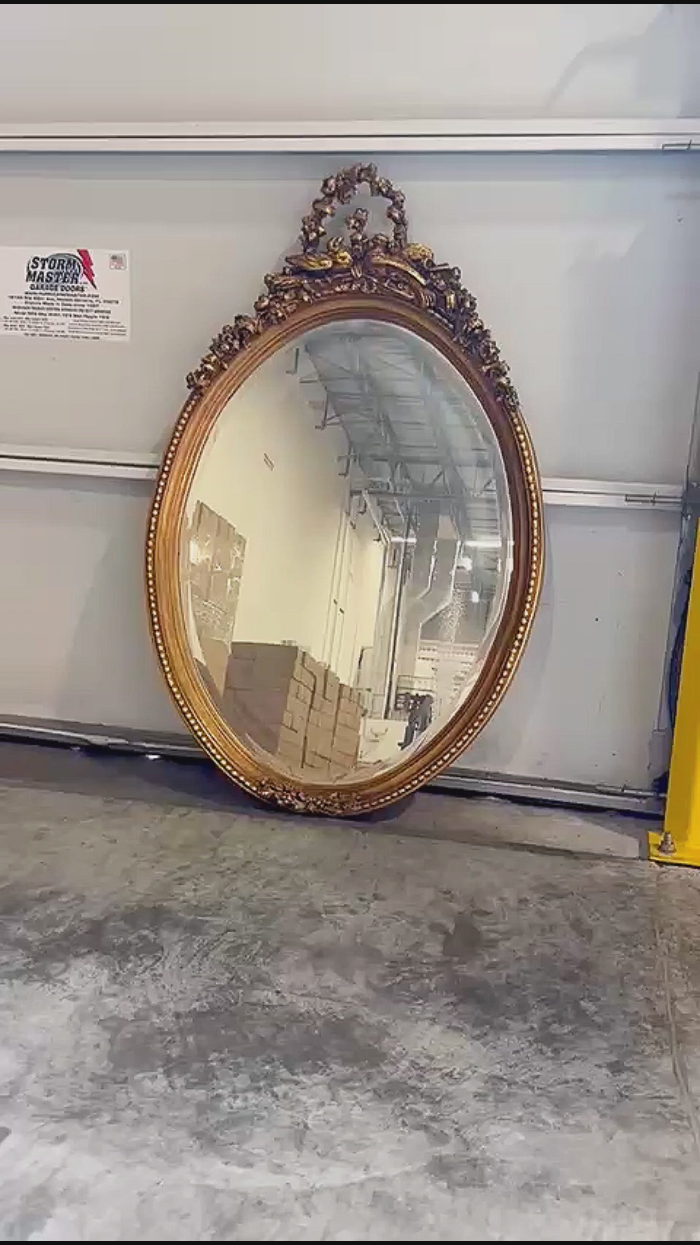 Bring a touch of timeless elegance and European charm to your home with this stunning oval mirror, which features a classic French-Italian design. The frame is expertly crafted and finished with hand-applied gold leaf. Delicate hand-carved birds and floral details evoke the artistry and refinement of traditional European design.