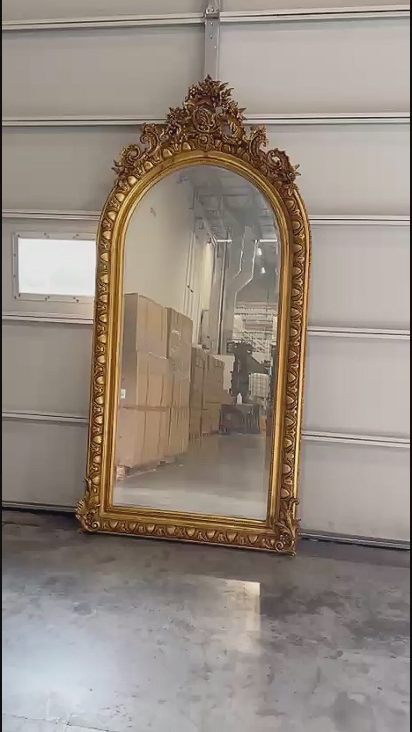 Bring classic European elegance to any room with this impressive 84 inch French Rococo style floor mirror. It features an ornate, vintage-style frame with intricate carvings and a rich antique gold leaf finish that adds warmth and sophistication. With its grand scale and curved Rococo silhouette, this mirror is a stunning focal point and is perfect for bedrooms, dressing areas, entryways or formal living rooms. Leaning it against the wall or mounting it instantly adds depth and luxury to your décor.