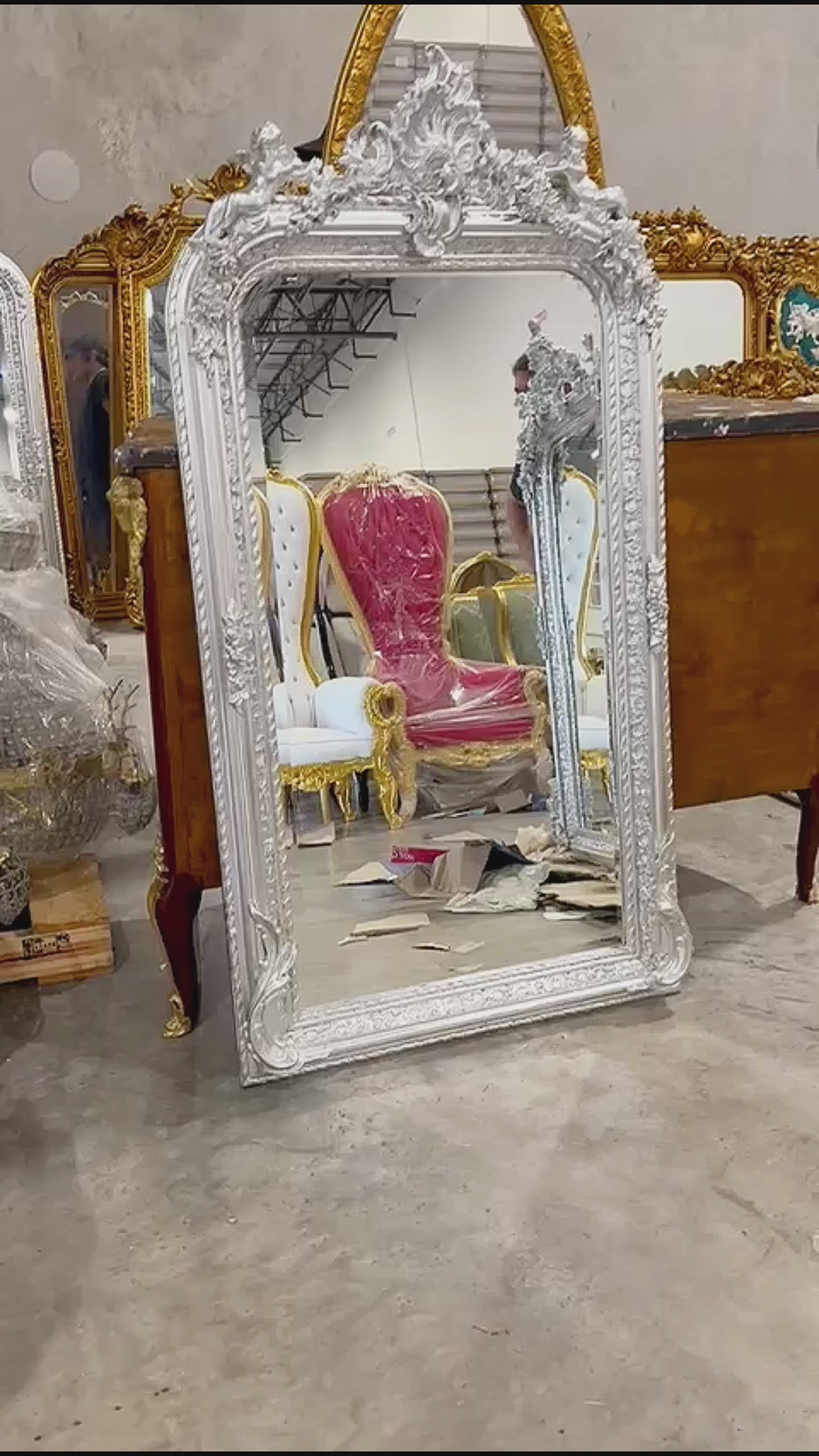 French Style Silver Coral Floor Mirror 5 Feet Tall silver Leaf