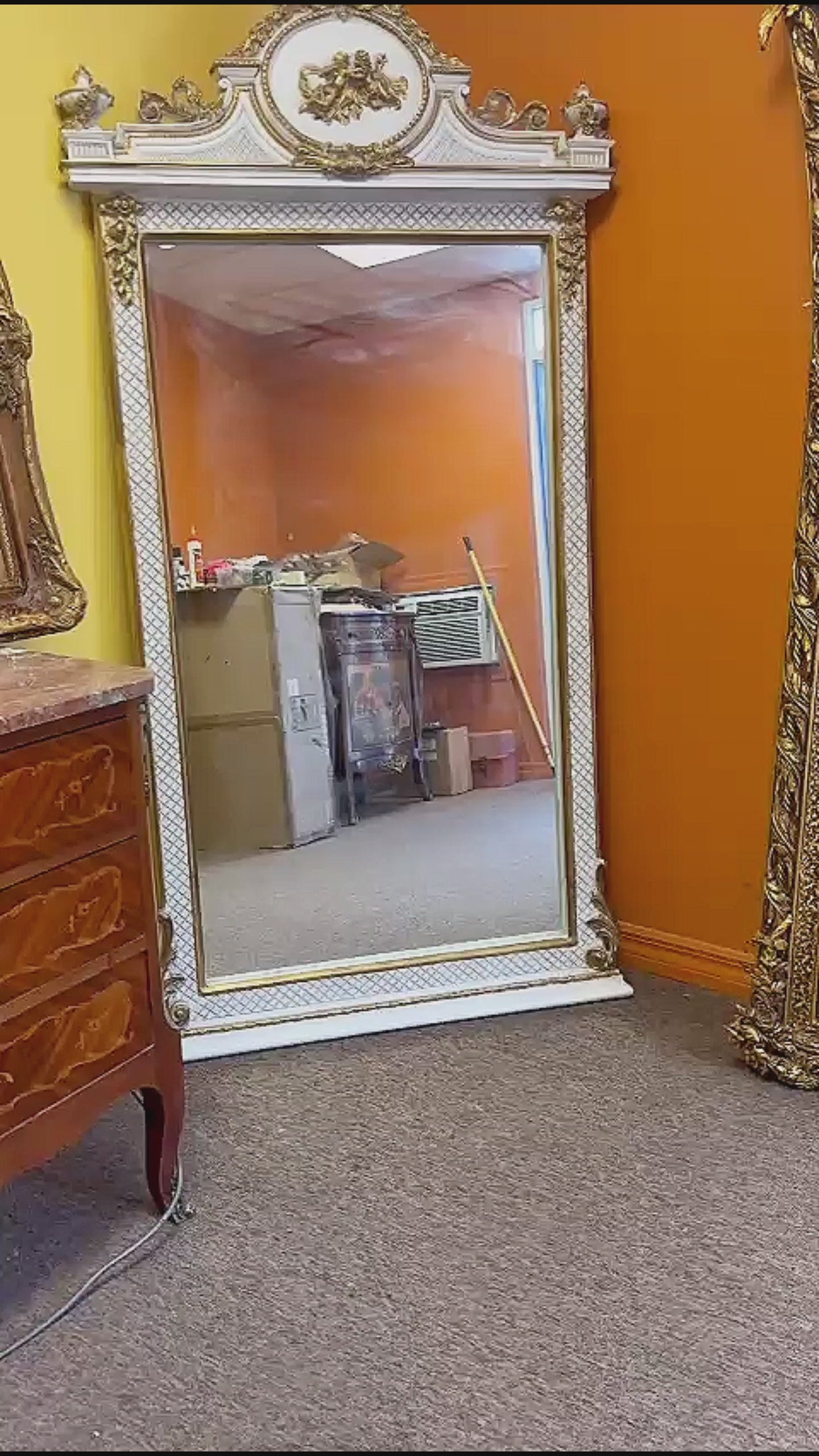 Rococo Style Gold White Color Floor Mirror 5.6 Feet Tall Gold Leaf