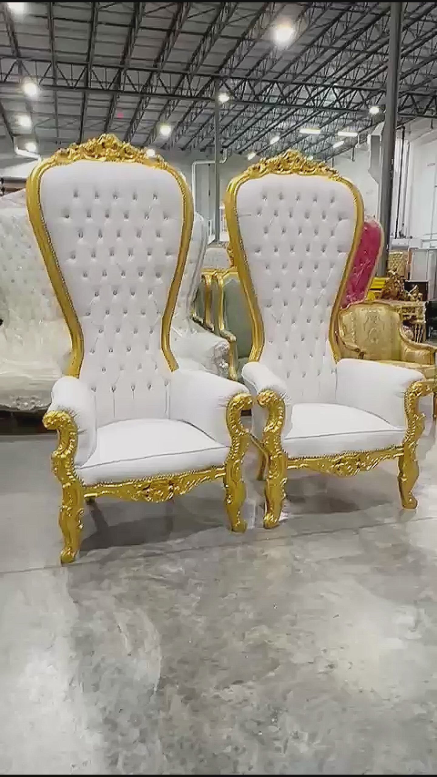Throne Chair French Style White Leather High-Back Tufted Golden Throne